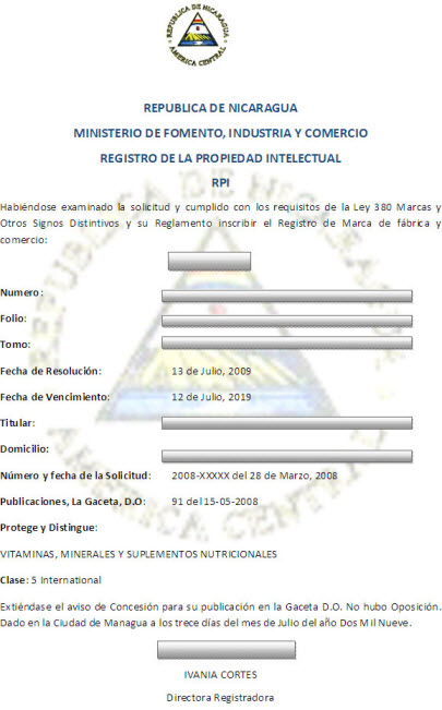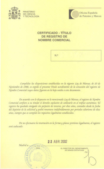 para certificado de inscripción de marca